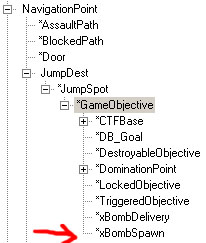 It's under NavigationPoint/jumpdest/jumpspot/gameobjective/xBombSpawn