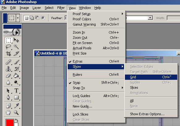 Next you need to turn on the grid of your graphic proggie. In photoshop it works like this: