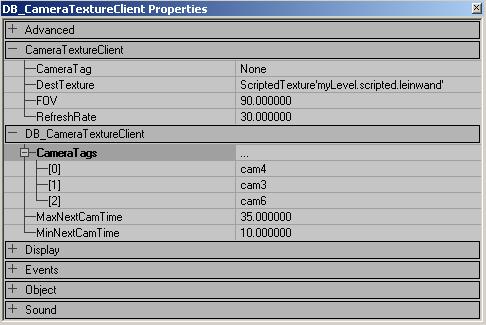 Now we need a tag for the DB_CameraScript to tell the texture from which camera to spec. Make sure these cameras have a low "optimal distance", otherwise it's hard to see something on the screens. 400-900 should be ok.