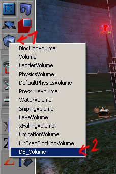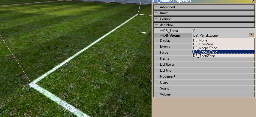 To prevent that you from running into your own goal as keeper (which happens quite often and is very annoying) place a BlockingVolume In your goal (Select it from the same place as the DB_Volume).